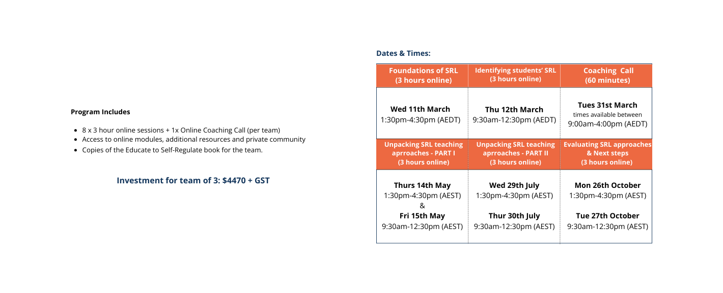 To discuss pricing, delivery modes, or customised arrangements for your school or system, please contact: consulting@shyambarr.com.au -